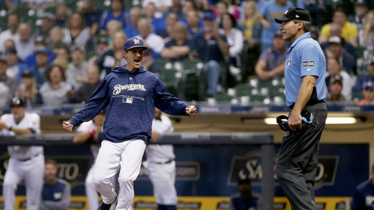 Manager Craig Counsell, who you can hear from below (along with closer Corey Knebel), was ejected in the ninth inning of the game.